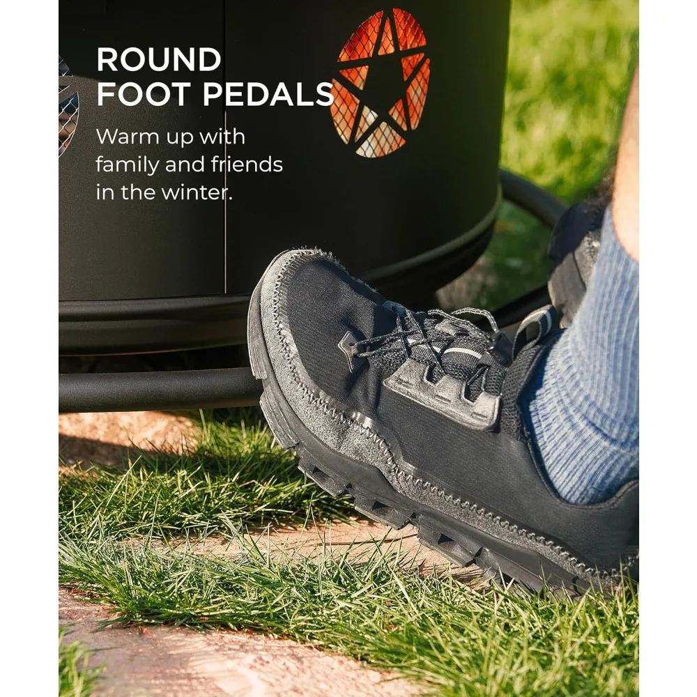 - 【SAFETY & DURABLE】wood-burning fire pit can accommodate up to 40 pounds of wood, provide a roaring fire, and adequate warmth. A firepit with four legs and sufficient weight can provide stability on uneven terrain. In addition four legs, the bottom of the fire pit also has a circle of fire ring, which serves to enhance the stability of the fire pit and can keep people at a safe distance from flames.