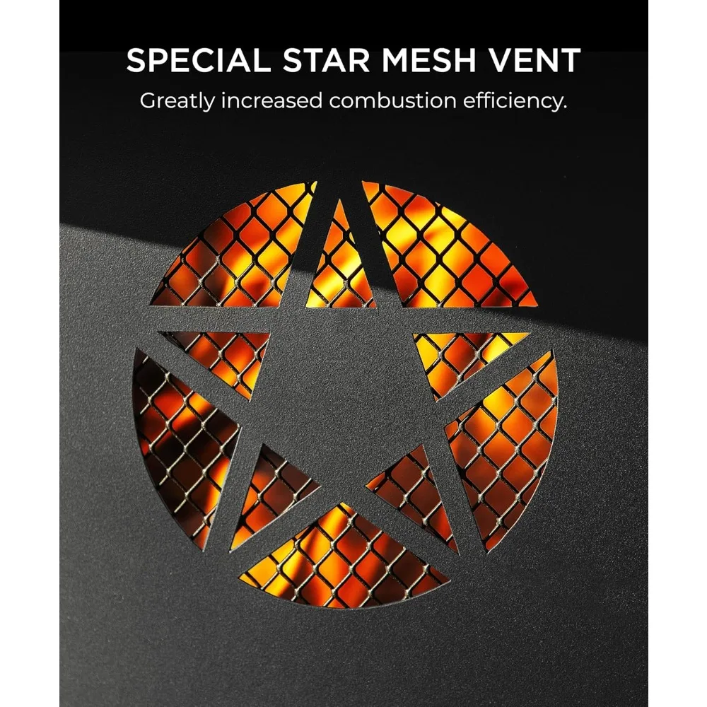 - 【MODERN & HUMANIZED DESIGN】The fire pit table comes with 1 height-adjustable 360° swivel grills which disassemble freely. You can barbecue, keep food warm or put pan to cook on them. The side of wood-burning fire pit is created with charming pentagram cut-out design which catches firelight for creating fun shadows. The drilled design promotes airflow and keeps the fire strong.