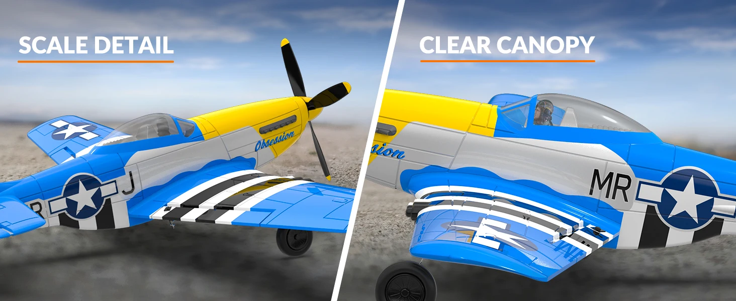 Volantexrc 4-CH RTF RC Plane, P-51D Mustang RC Airplane, One-Key Aerobatic, 6-Axis Gyro, Suitable for Outdoors and Gifts